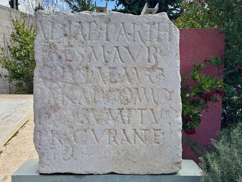 The inscription dates to 202-205 CE, when Plautilla was Caracalla’s wife. It also bears Jerusalem’s honorific title “Cmmodiana” which was added by Emperor Commodus (180-192 CE).