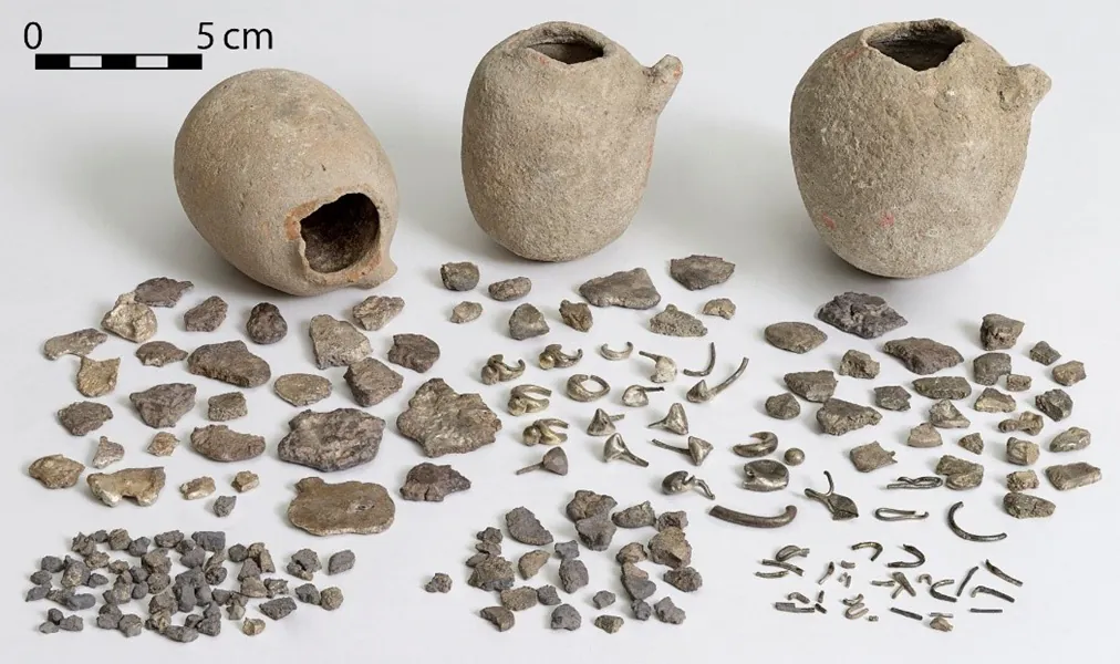 A silver hoard found in Ein Hofez (6 km west of Megiddo). Dating to the Iron age, Eshel’s research demonstrated that its origin was biblical Tartesso. Similar silver hoards were found also in Biblical Judah. Photo by Warhaftig Venezian. Courtesy of the Israel Antiquities Authority and Dr. Tzilla Eshel.