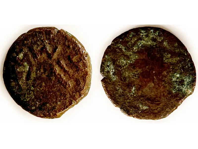 A crude bronze coin from the second year of the Jewish rebellion against the Romans. (c) Danny Herman
