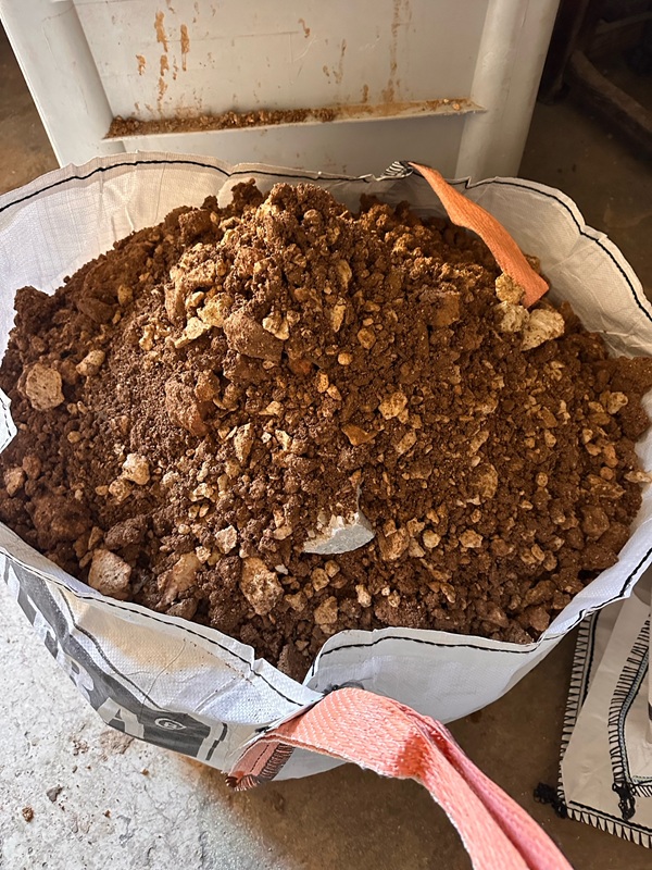 A close up of the brown gardening soil uncovered under the Holy Sepulchre.