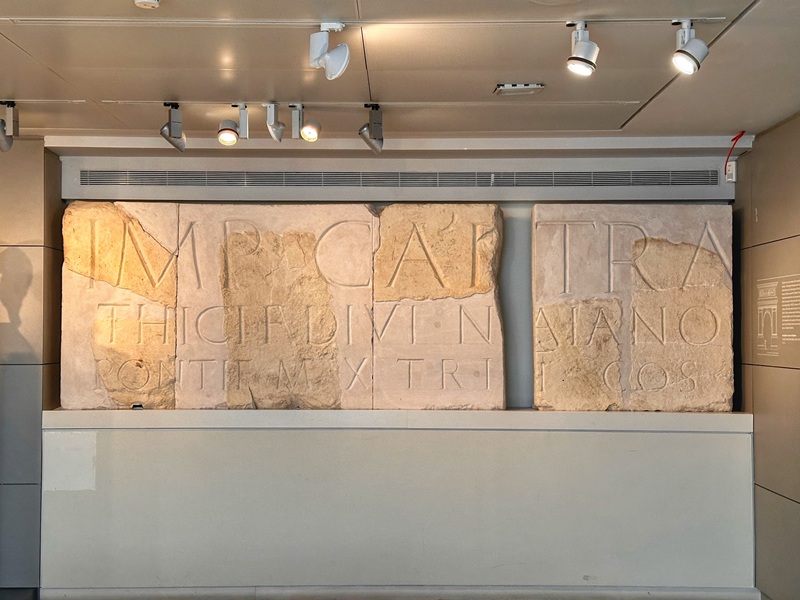 The restored triumphal inscription is now on display also at the Israel Museum. The letters in its first line are larger than those in the façade of the Pantheon in Rome.