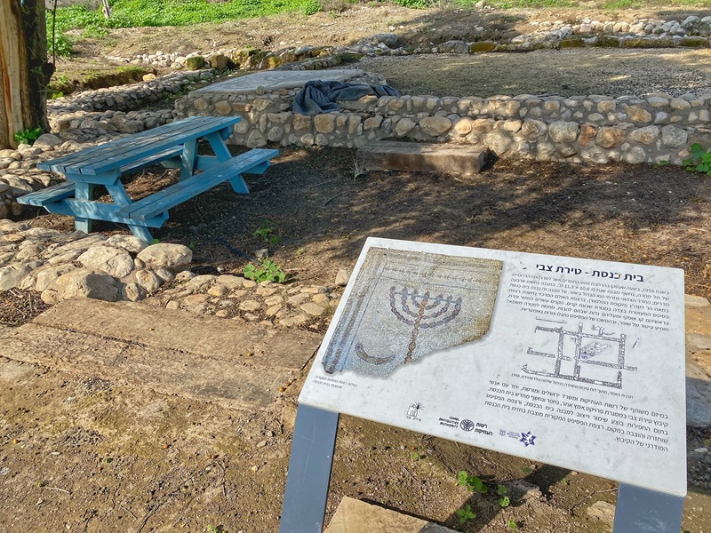 Following the discovery, the sites’ name was changed to “Tell Menorah, and in 2019 a replica of the mosaic floor was installed at the site. The original mosaic is on display at the entrance to Tirat-Zvi’s synagogue.