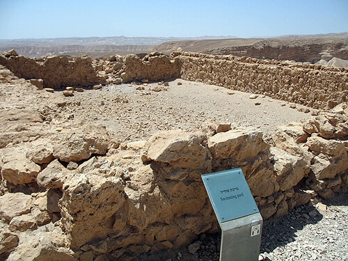 South of the western palace there is a plastered stepped pool of an unusual large dimensions. The archaeologists debate whether it served as a large Jewish ritual bath (Miqveh) or a plain immersion pool.