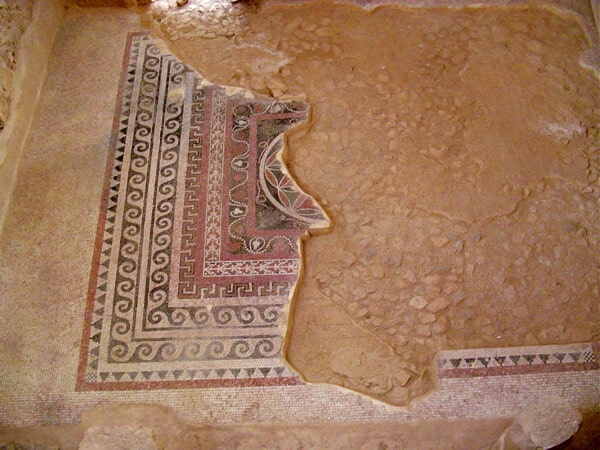 It is unclear why Herod built both the western and the more splendid northern palaces. This may reflect two different periods of development of Masada by Herod. The western palace is a two-story complex built around an inner courtyard. A restored section of the second floor provides a view of the inner courtyard, the bathing area, and the throne room. Their floors are adorned with mosaic floors with intricate geometric designs.