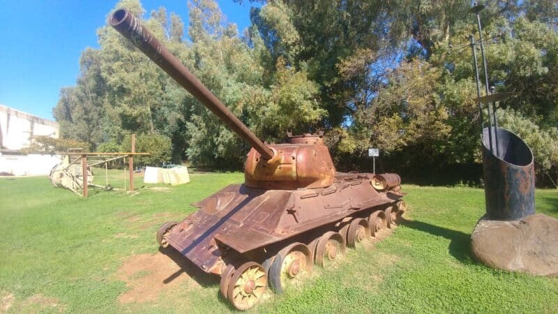 Next to the museum, a Syrian T-55 tank is displayed at the spot where it was stopped in 1967. The tank participated in the failed Syrian attempt to conquer the Kibbutz during the Six Day War.