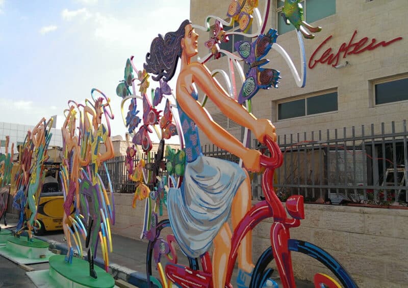Israeli contemporary artist David Gerstein is the most famous living Israeli artist. His works include paintings on canvas, but he is most famous for his multilayered wall sculptures and designed objects of metal. Cows, flowers, birds, and athletes are just some of his subjects, all treated with humor, playfulness, and optimism. His studio, near Beth Shemesh, is a four-story building in a grey industrial area. But inside, you are surrounded by 3d his, colorful, and whimsical images. His works range from US$100 to $1.5M and can be found in fine art galleries worldwide. But only in Gerstein’s studio can you see the most extensive collection of his works and the creation process and meet the master artist in person.