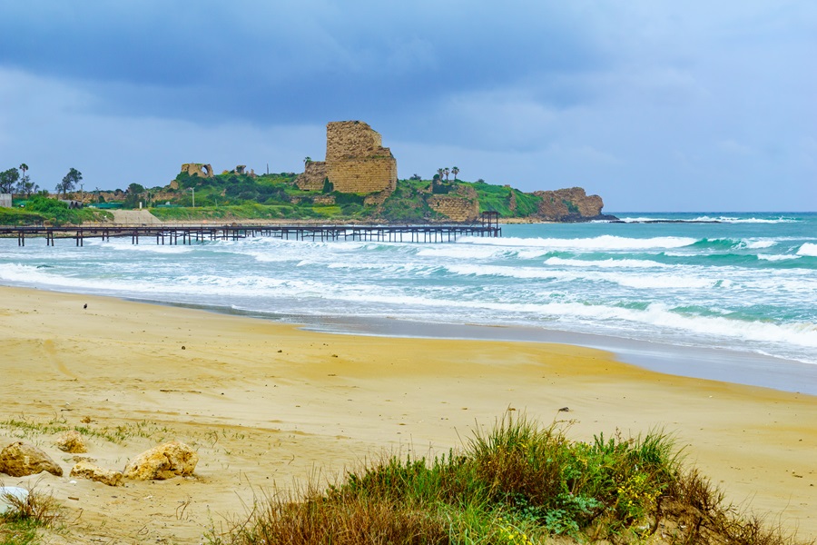 Located 13 miles south of Haifa, the Medieval Fortress of Atlit was erected in 1218 CE by the Templar knights to reinforce their hold along the Mediterranean coastline. Built with the participation of pilgrims, it was known in French as “Chastel Pelerin” or “Château Pèlerin.”