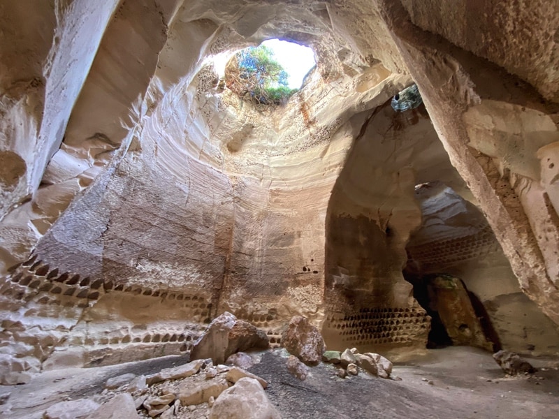 Luzit Caves are a system of interconnected dome-shaped caves in the Shephelah, about 8 miles north of Maresha. The site has never been excavated, yet it is estimated that the caves were used between the Hellenistic and early Muslim periods. The caves were used as quarries, dovecots (Columbariae), cisterns, and storage. Some became hideouts during the Bar-Kokhba rebellion.