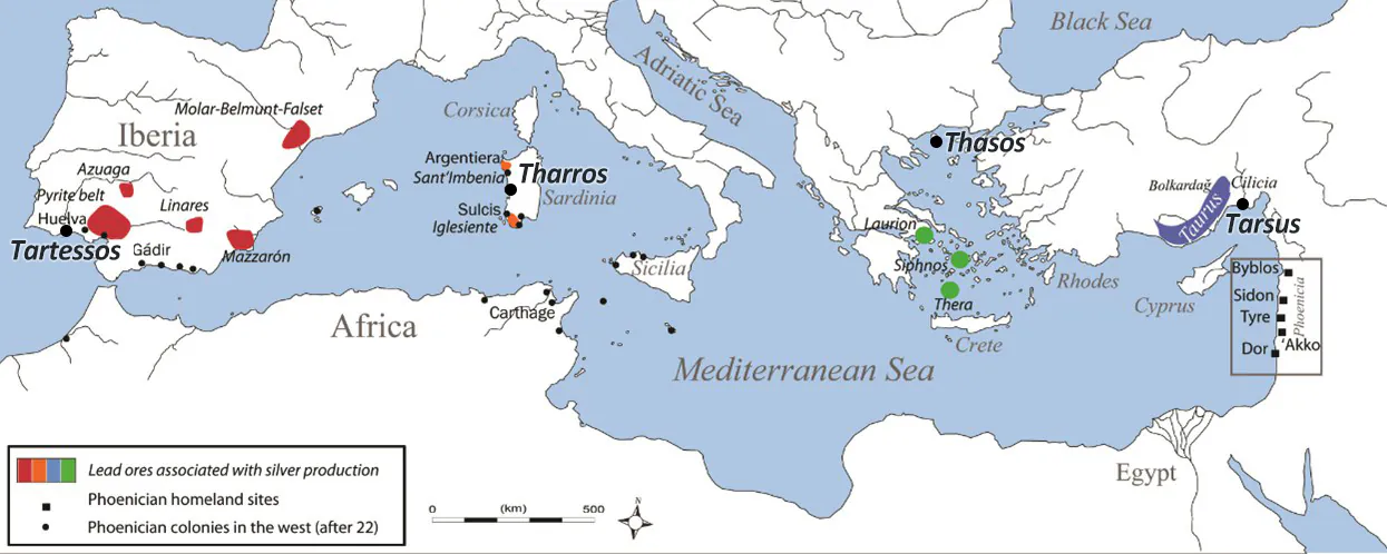 Eshel Tz. et. al. 2019. Lead Isotopes in Silver Reveal Earliest Phoenician Quest for Metals in the West Mediterranean. PNAS 116 (13): 6007-6012.