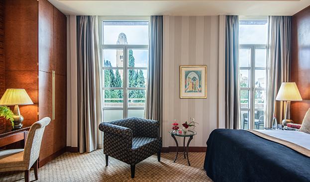 Junior Suites provide generous space designed for relaxation and quiet elegance. They include a comfortable sitting area, refined details, and enhanced privacy. All Junior suites are equipped with a jacuzzi bath, face the Old City, and some have balconies. This category is ideal for guests seeking elevated comfort during a spiritually enriching stay.