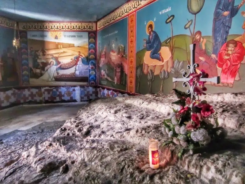 Another lesser-known site, located opposite the Chapel of the Ascension, the Greek Orthodox Monastery of the Ascension has a tumultuous history. Built on the site of an ancient church destroyed by Persians in 614 CE, the Greek Orthodox church purchased it in the 19th century. In the early 1990s its archimandrite, Joachim Strogilu, attempted to build a two-tier church without proper permits. In 1992, the municipality began demolition it, but local legend claims an icon miraculously stopped the tractors’ engines, preventing the completion of the destruction. The site includes a cave believed to be where Jesus rested. It also houses the relics of Anastasia Panagopoulou-Strogil, Joachim’s mother, who was martyred during an attack on the monastery.
